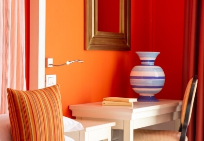 I colori dei loro arredi moderni e sofisticati richiamano l'azzurro dell'isola. Raffinate e luminose, hanno un bagno privato con doccia.